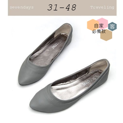 尖頭素面車線舒適娃娃鞋平底鞋包鞋灰色(31-48)