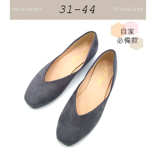 自家手工鞋方頭V口絨布素面平底鞋奶奶鞋包鞋娃娃鞋灰色(31-44)