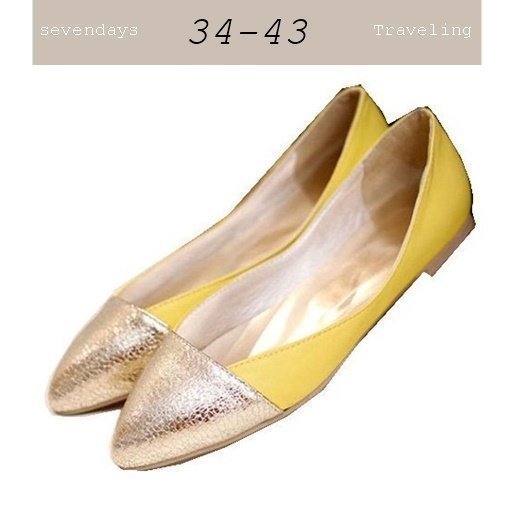 尖頭爆裂金拼接舒適娃娃鞋平底鞋包鞋黃色(34-43)