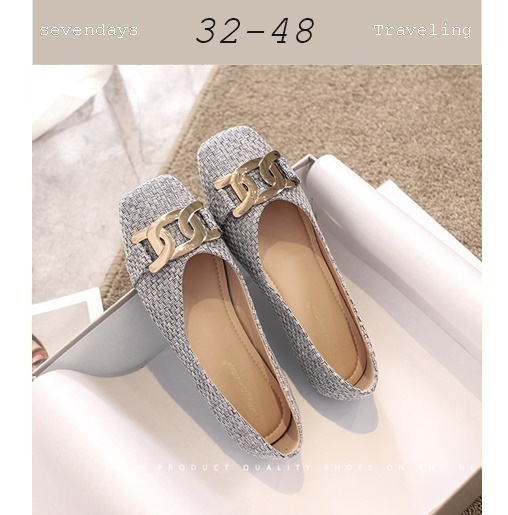 方頭編織寬金鍊平底鞋包鞋娃娃鞋灰色(32-48)
