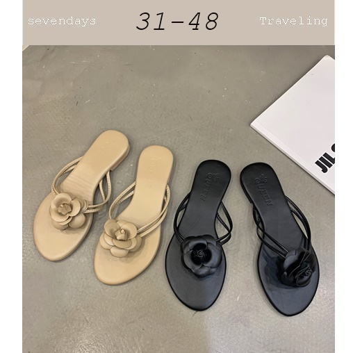 圓頭小香風山茶花平底鞋人字拖鞋夾腳拖鞋涼鞋(31-48)