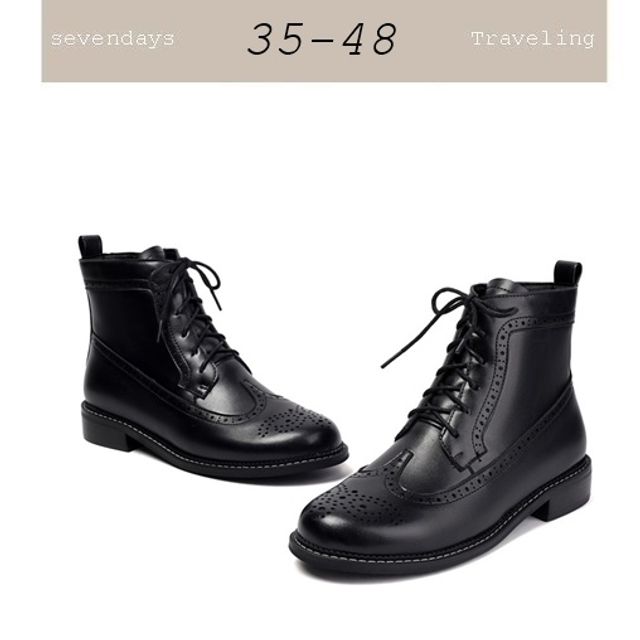 圓頭雕花復古拉鍊綁帶馬丁靴機車靴(35-48)