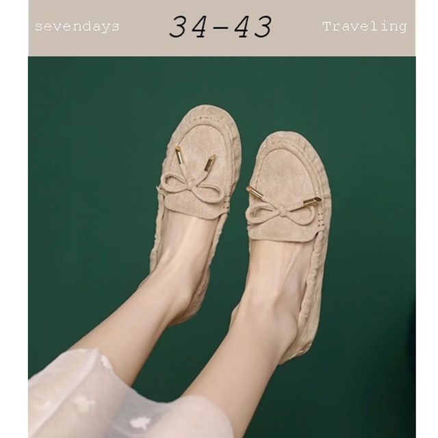 圓頭質感舒適金鍊蛋捲鞋豆豆鞋杏色(34-43)