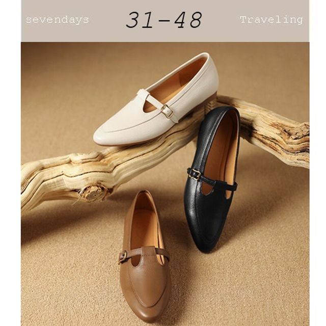 「時光書信.T字扣帶學院平底鞋」
