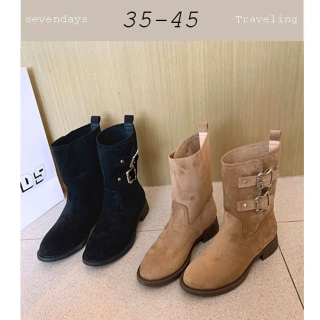 以柔霧麂皮搭配雙金屬扣環設計