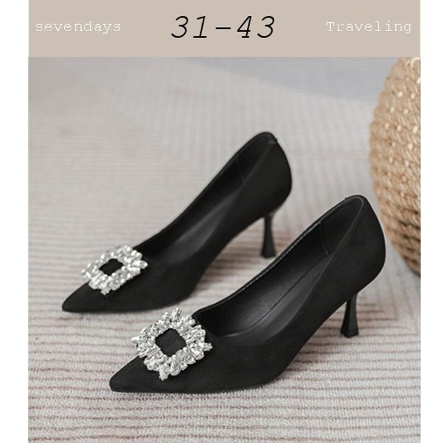 鞋面點綴著水滴形銀鑽,恰到好處優雅姿態