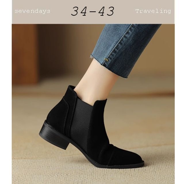 [24HR急件出貨]圓頭真皮磨砂牛皮鬆緊短靴切爾西靴短靴黑色