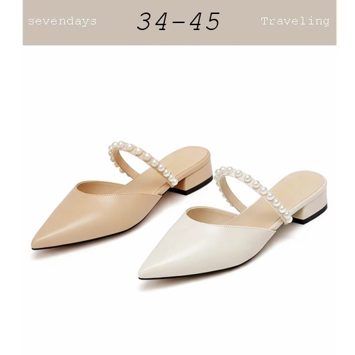 簡潔尖頭鞋型搭配珍珠細帶點綴